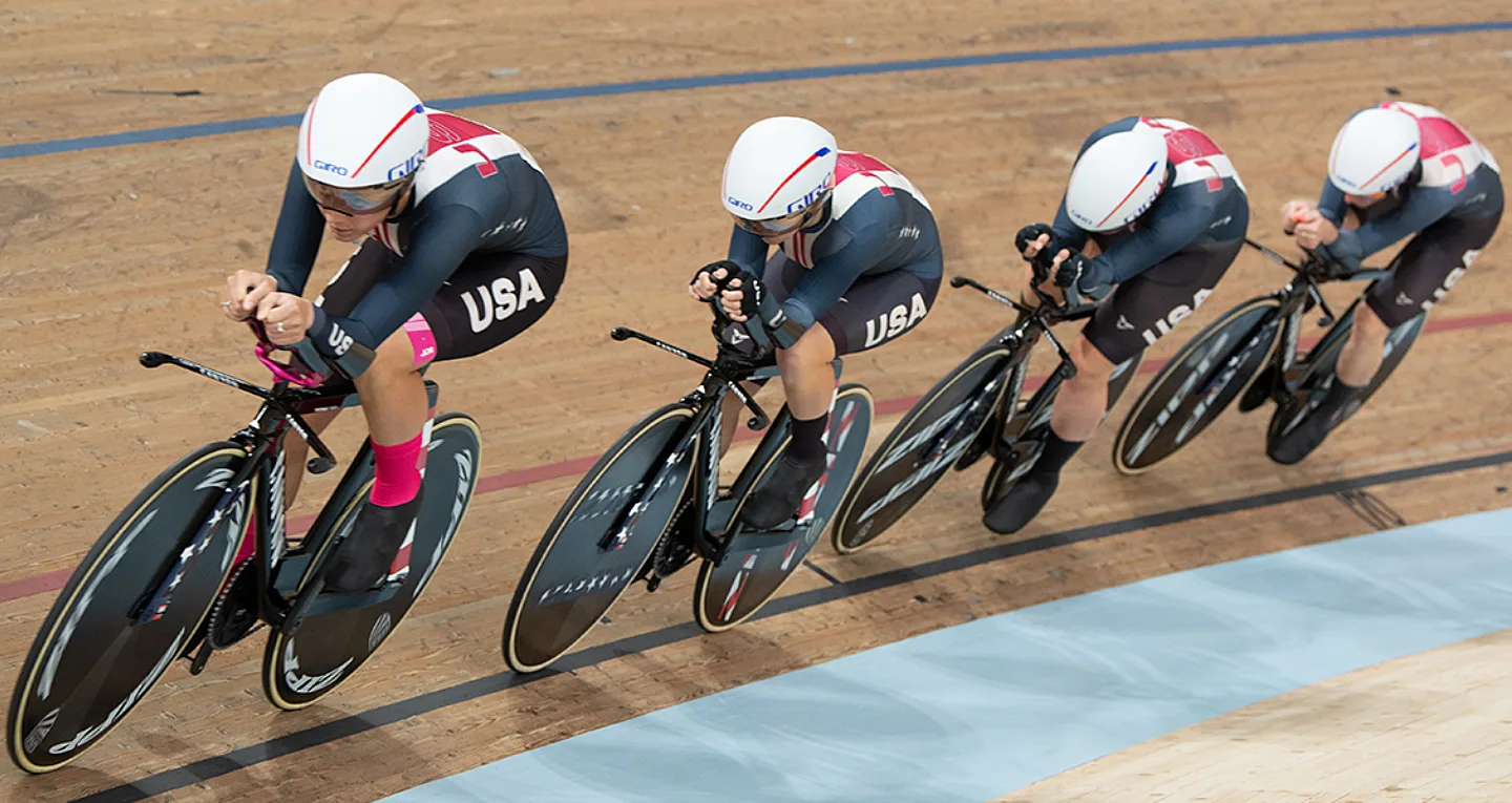 A rainy fourth day of racing at the 2023 UCI Cycling World Championships led to several adventitious results for Team USA. BMX Freestyle athletes saw delays during their qualifiers, but each of the road races and downhill events proceeded as planned. Racing stayed on track for the Women’s Team Pursuit where the Americans earned sixth place.
