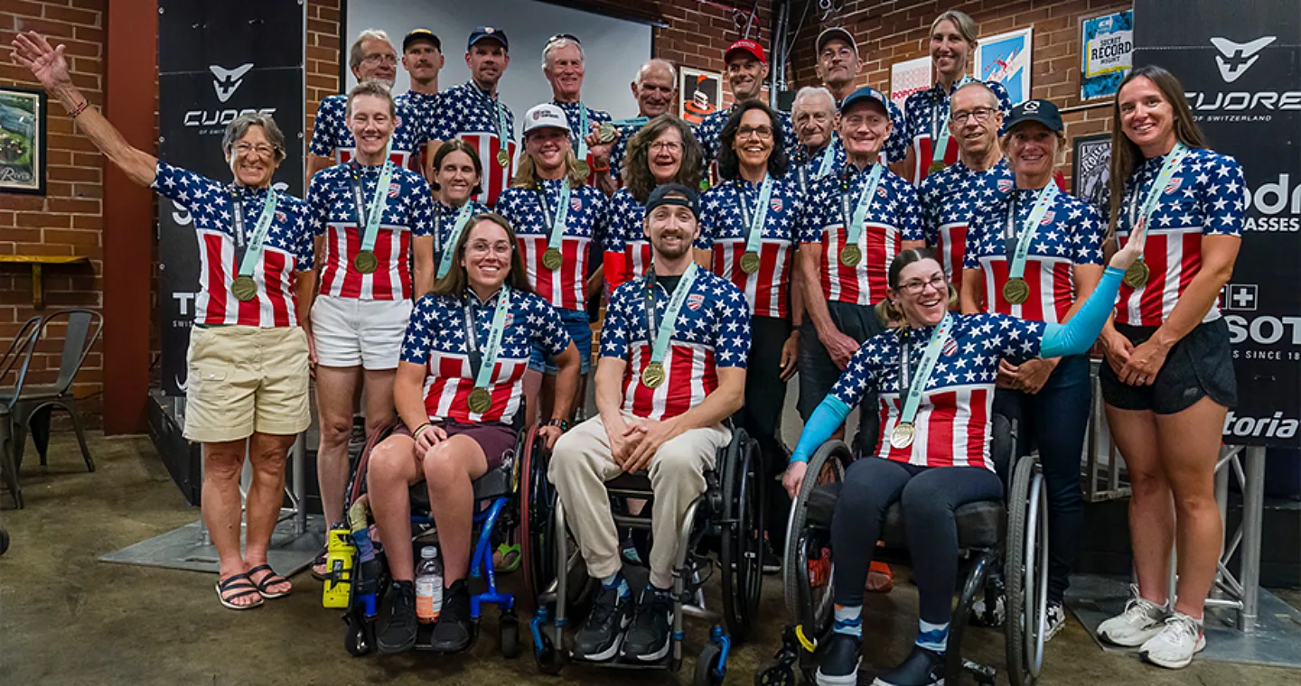 The second day of the national championship saw athletes race against the clock in the Time Trial. Three different distances were used depending on the rider’s age or classification. Riders contested either a 16.1-, 20.9-, or 29.4-kilometer course. Setting the fast time on the shortest course for the men, Alfredo Delossantos (Hopewell Junction, N.Y.; Semper Fi & America) stopped the clock with a 24:12.06 for the Men’s H5. Elizabeth Neag (Medina, Ohio; Cleveland Cycling Ac) rode to a 25:44.08, making her the fastest woman over 16.1 kilometers. On the 20.9-kilometer course, James Dickerson (Fort Collins, Colo.; Great Divide Brewing) finished in 29:08.72, winning the Men’s 65-69. The Women’s 55-59 also contested this course, and Tracey Jacobs (Boulder, Colo.; Groove Subaru/Excel) won that age group with her time of 31:54.00. Jadon Jaeger (Wauwatosa, Wis.; Methods To Winning) successfully defended his Men’s 40-44 title from 2022 while setting the fast time on this course with his 39:46.16. The Women’s 40-44 winner, Leah Thorvilson (Little Rock, Ark.; 3T Q&M Cycling), stopped the clock at 46:33.71, putting her ahead of any other woman by over a minute.