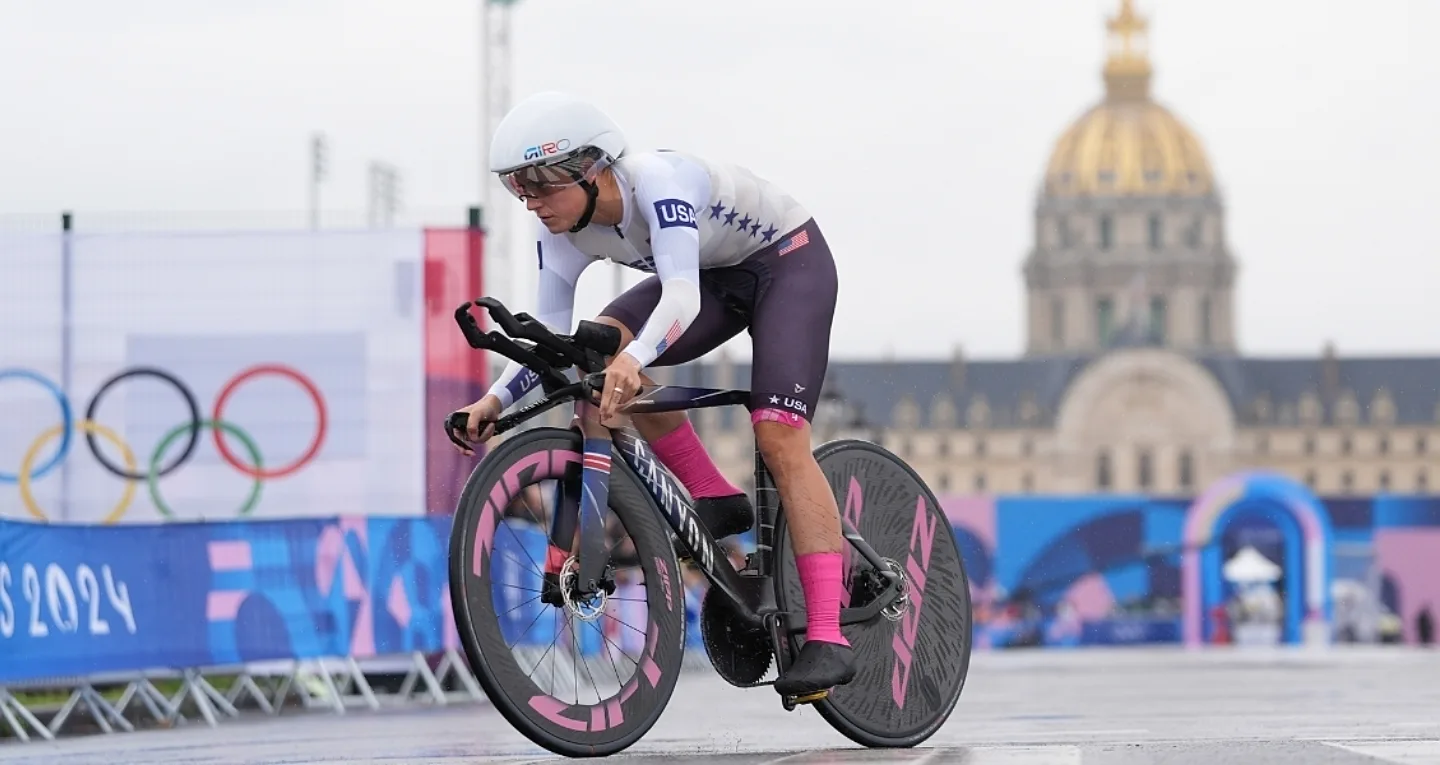 The cycling events at the Paris 2024 Olympic Games kicked off on Saturday afternoon with the Women's and Men's Individual Time Trials. Starting in Invalides and finishing just down the road on the Pont Alexandre III bridge, athletes from around the world tackled the 32.4-kilometer course on the technical and uneven roads of Paris. With rain forecasted for most of the day, it was anybody's race to win. Unfortunately, as conditions worsened, three of the four Team USA riders crashed on course. Chloé Dygert (Brownsburg, Ind.; CANYON//SRAM Racing) was able to come back from her crash to earn USA Cycling’s first medal of the Paris Olympics.