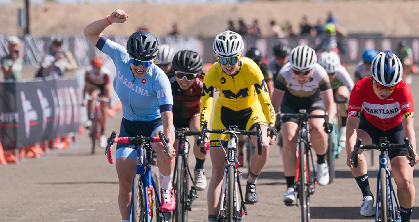 Sunday’s event, the criterium, was all about the athletes' speed and cornering ability on the event's final day. The 1.1-mile six-corner course was at the Balloon Fiesta Park on the northwest side of Albuquerque. Women raced for 70 minutes, with the Club division starting at 9 a.m. and the Varsity division at 10:30 a.m. For the men, champions were decided after 80 minutes of racing, with the Club division taking place at 12:15 p.m., followed by the Varsity division. Each race had four points sprints throughout their duration.