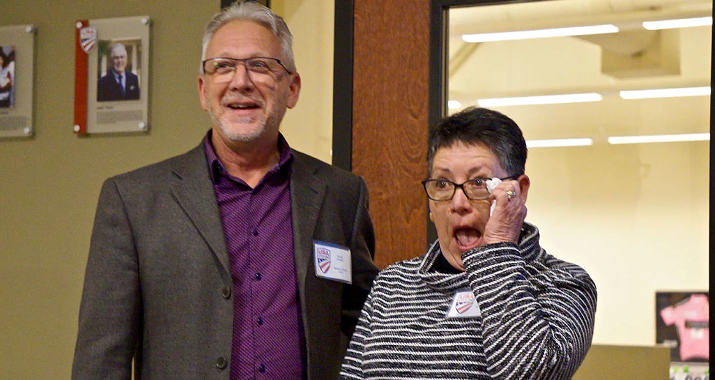 COLORADO SPRINGS, Colo. – Diane Fortini (Hanson, Mass.) became the seventh person to be added to the USA Cycling Officials’ Hall of Fame. She was presented with a plaque and ceremony at the USA Cycling (USAC) headquarters on February 16, during the 2019 Official’s Summit. Fortini has spent the better part of the last 25 years as part of the cycling community, as an official, member of the Board of Trustees, liaison to the Bermuda Cycling Center, and a fixture within the New England Bicycle Racing Association (NEBRA).
