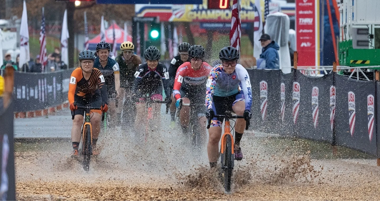 Day 3 of the 2022 USA Cycling Cyclocross National Championships kicked off with the Collegiate Varsity and Club women toeing the starting line. With sloppy conditions on tap for the day, leaders went through the pit every half lap to secure their dominance
