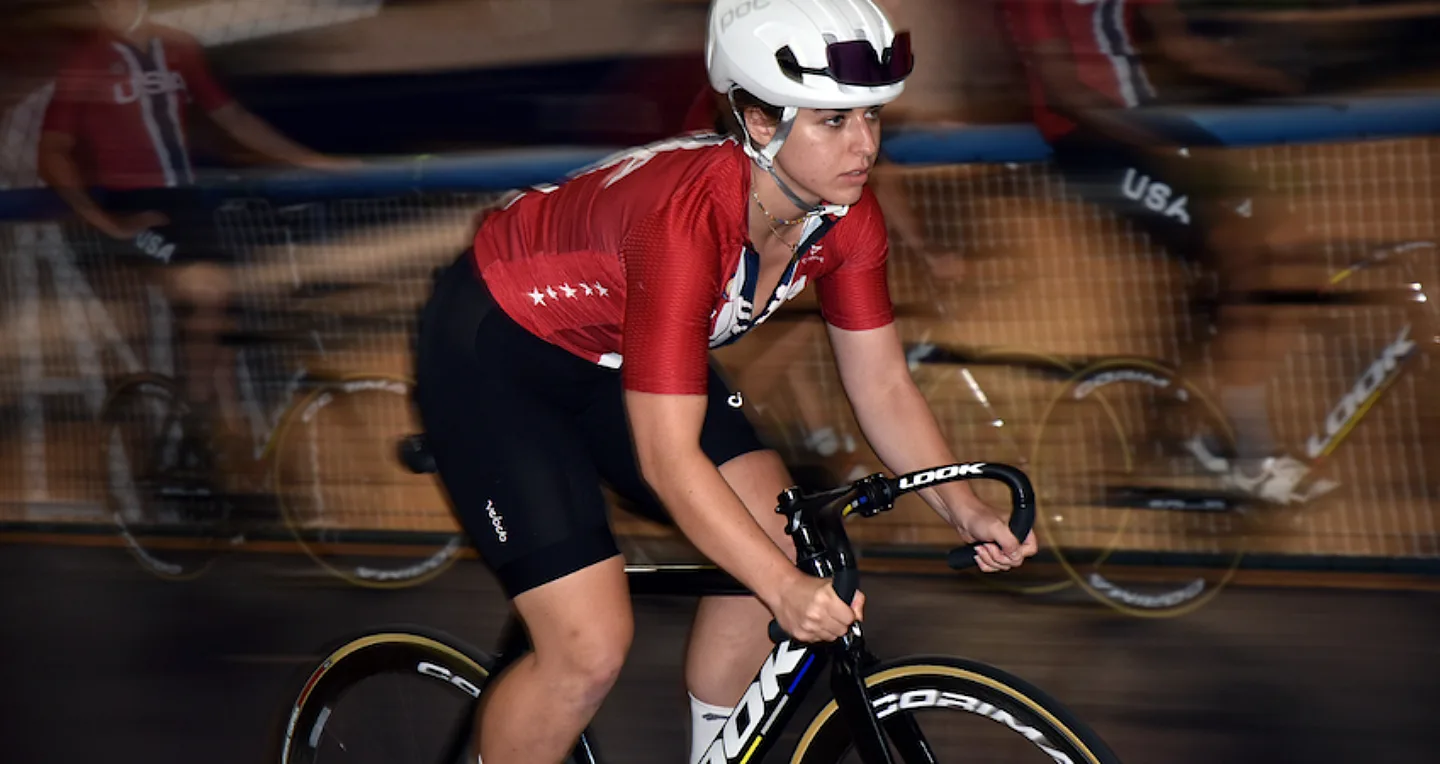 Although she wasn’t racing the Sea Otter Classic in 2023, she went to support her high school mountain bike teammates and ride in the hills around Laguna Seca Raceway. “I'd spotted the USA Cycling tent earlier in the day but wasn’t sure what was going on,” Hayley recalled. “We thought it was a game, just to get on the leaderboard. I ended up doing it and scoring within the range they were looking for.” Even after recording a 6-second power test that met the qualifying standards, Hayley wasn’t sure what she had qualified for: “I remember asking afterwards, ‘Is this for mountain biking?’ And they said, no… track cycling. I had no idea what it was at that point, but I kept going with the process.”
