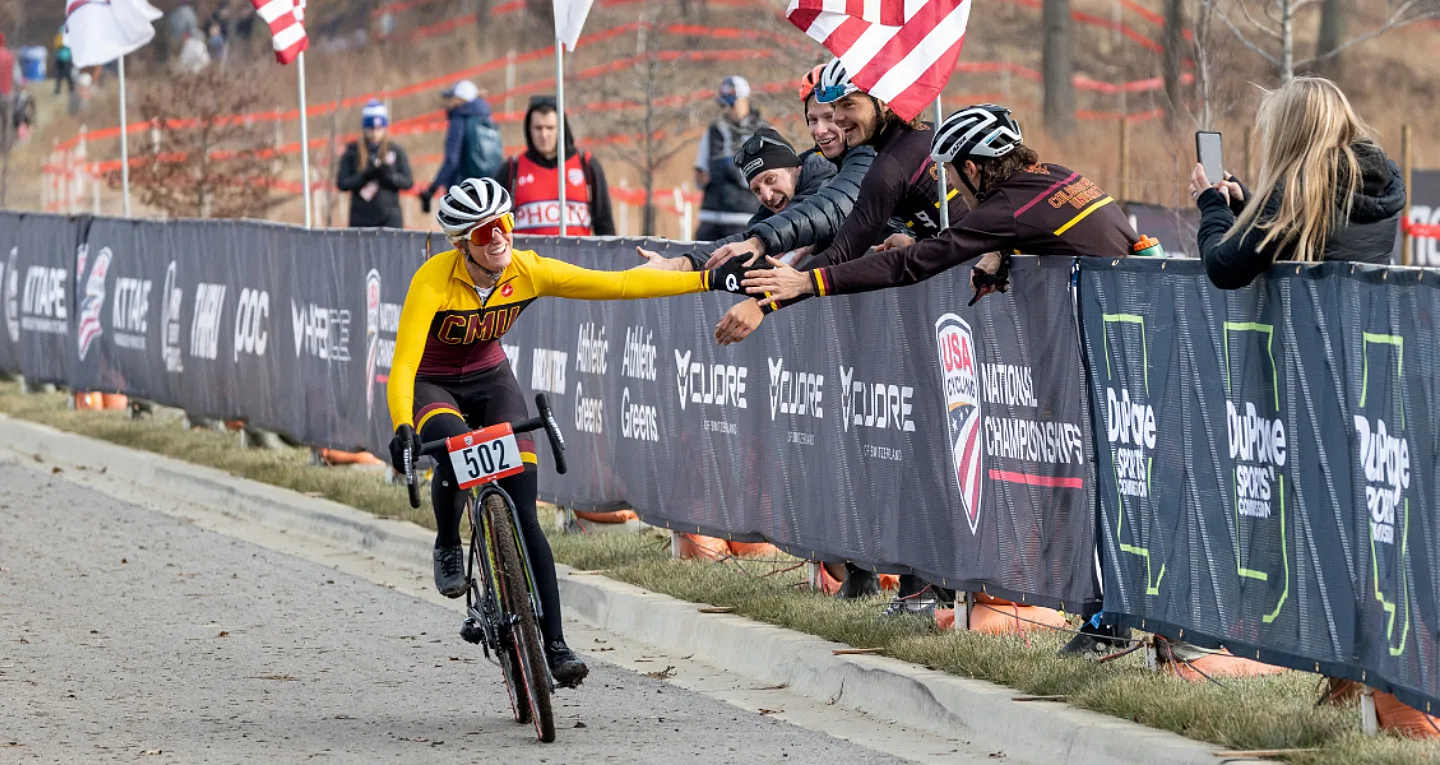 DUPAGE COUNTY, Ill. - On day five of the 2021 USA Cycling Cyclocross National Championships saw delayed start times due to a devastating wind storm the night before that continued into the morning. The expo saw multiple vendors sustain significant wind damage, but the course was prepared by the 10:30am pre-ride window. The first official race of the day kicked off at 11:00am.