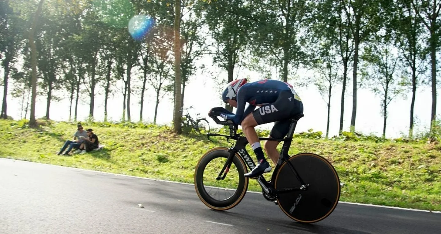 On the final day of time trials in Brugge for the 2021 UCI Road World Championships, Team USA lined up for the Team Time Trial Mixed Relay. On the team was Lawson Craddock (Houston; EF Education - Nippo), Brandon McNulty (Phoenix; UAE Team Emirates), Neilson Powless (Roseville, Calif.; EF Education - Nippo), Coryn Rivera (Tustin, Calif.; Team DSM), Leah Thomas (Santa Clara, Calif.; Movistar Team Women), and Ruth Winder (Boulder, Colo.; Trek-Segafredo).