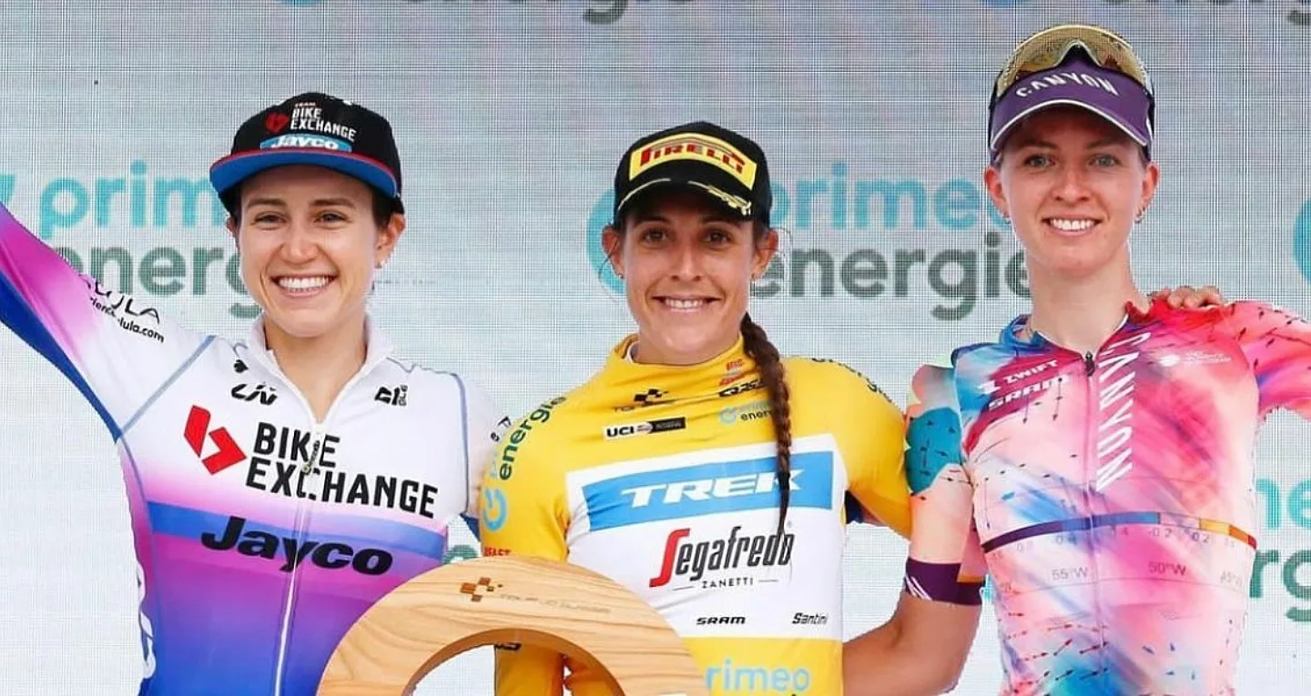 (June 18-21) – Kristen Faulkner (Team BikeExchange-Jayco) held the yellow race leader’s jersey for two stages of the 4-stage women’s Tour de Suisse, but in an epic battle on the rainy final stage, lost the stage and her 4-second lead after crashing less than 100 meters from the finish. Faulkner earned the jersey with her Stage 2 Individual Time Trial victory, the first of her career. She would finish second in the overall GC.