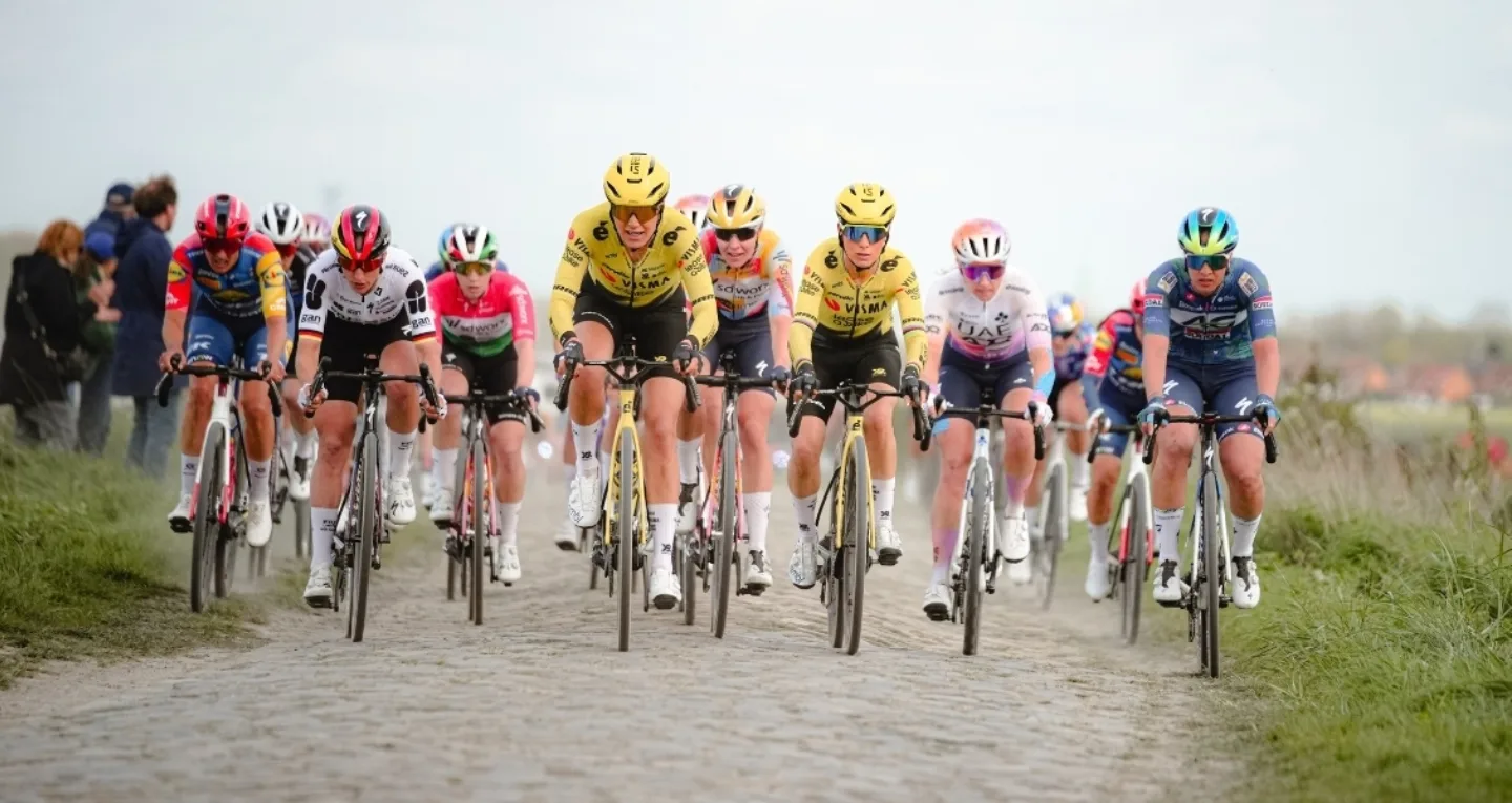(April 12) – Megan Jastrab (UAE Team ADQ) battled the world’s best over a 143-kilometer course with 20 cobbled sectors, placing 5th at the women’s Paris-Roubaix. This was the sixth year that the pro women had their own race. In her top result so far this season, Jastrab came in with Lotte Kopecky 1:30 behind the winner, Germany’s Franziska Koch.