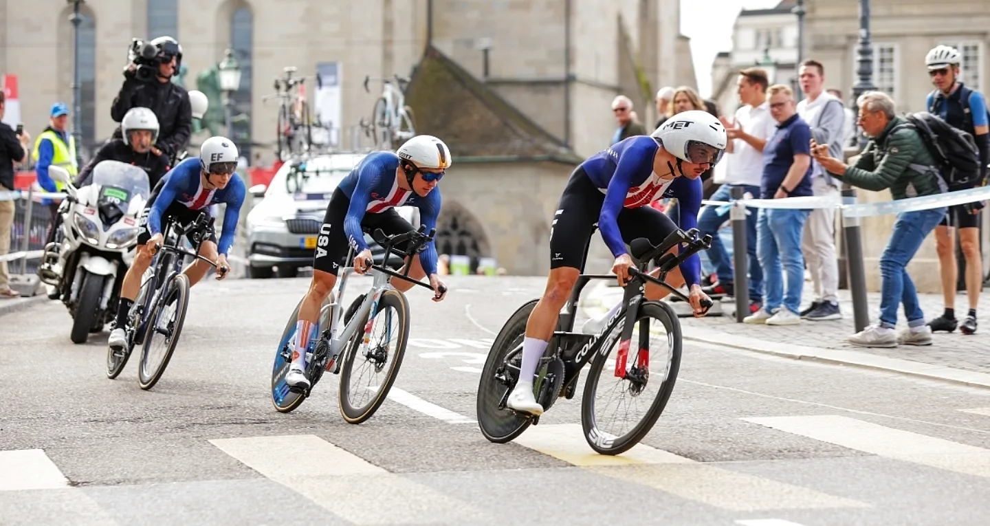Today marked the last day of the Time Trial events at the 2024 UCI Road and Para-Cycling Road World Championships in Zurich, Switzerland. At the World Championships, the UCI hosts Team Relays, which are an exciting way to bring the teams together within their countries. On the road, riders take part in a Team Time Trial Mixed Relay. For this event, three men are sent off to race a Team Time Trial, then they hand off to three women, who then race their portion of the Team Time Trial, covering a total distance of 54 kilometers.