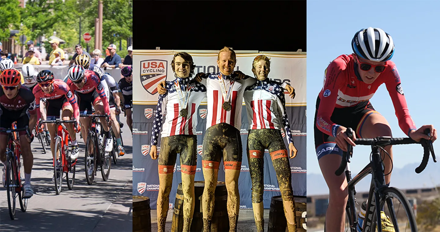 Left to Right: David and Josh in a crit, Team Relay at CX Nats, Cara in a TT.