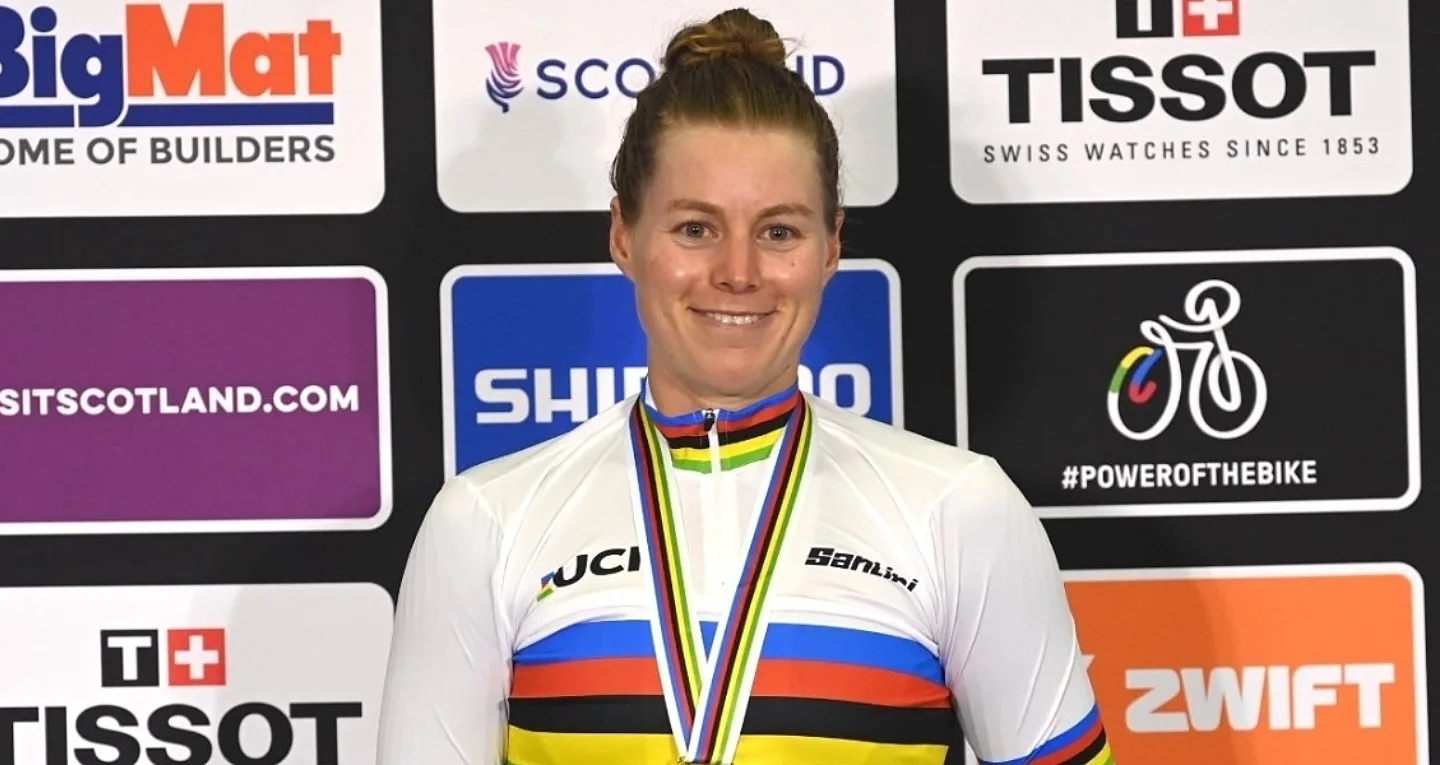 This is Valente’s 17th Elite World Championship medal and her third Elite Individual World Championship Title, having won the Omnium in 2022 and then the Scratch Race earlier in this championship. When asked about her growing trophy collection, she said, “Nobody really sets out to do something like that in your career, it just happens, and this has just been part of my career. It was an exciting moment when someone said it to me.”
