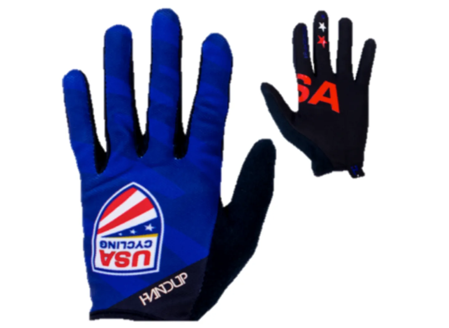 These Team USA gloves by HANDUP are a must have on and off the dirt. These gloves have 4-way stretch, lightweight mesh on the back of the hand. The stretch cuff helps to easily pull gloves on and off without fumbling for a Velcro strap. The durable, single layer Clarino leather palm gives maximum bike feel with no extra material bunching up. The laser cut ventilation holes on the palm offer great breathability. The silicone printed “USA” graphics on the palms allows for extra grip so you'll never drop those handlebars under any condition along with a huge towel sweat cloth on the thumb.