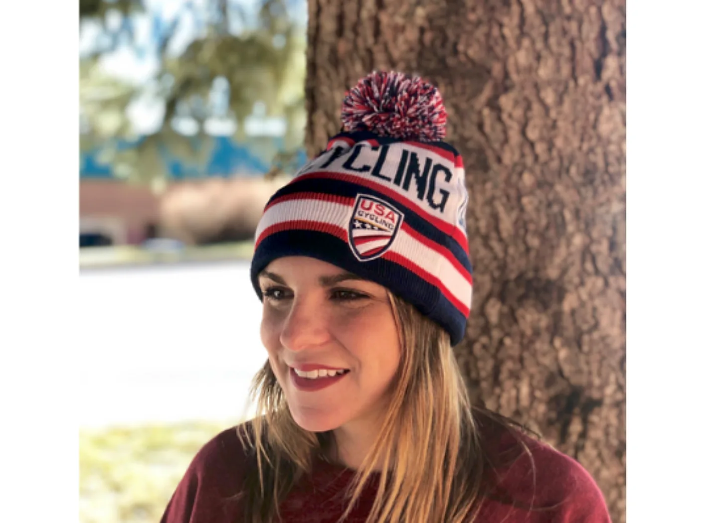 Keep warm before or after your ride with this stylish cycling beanie pulled together with a pom-pom on top.