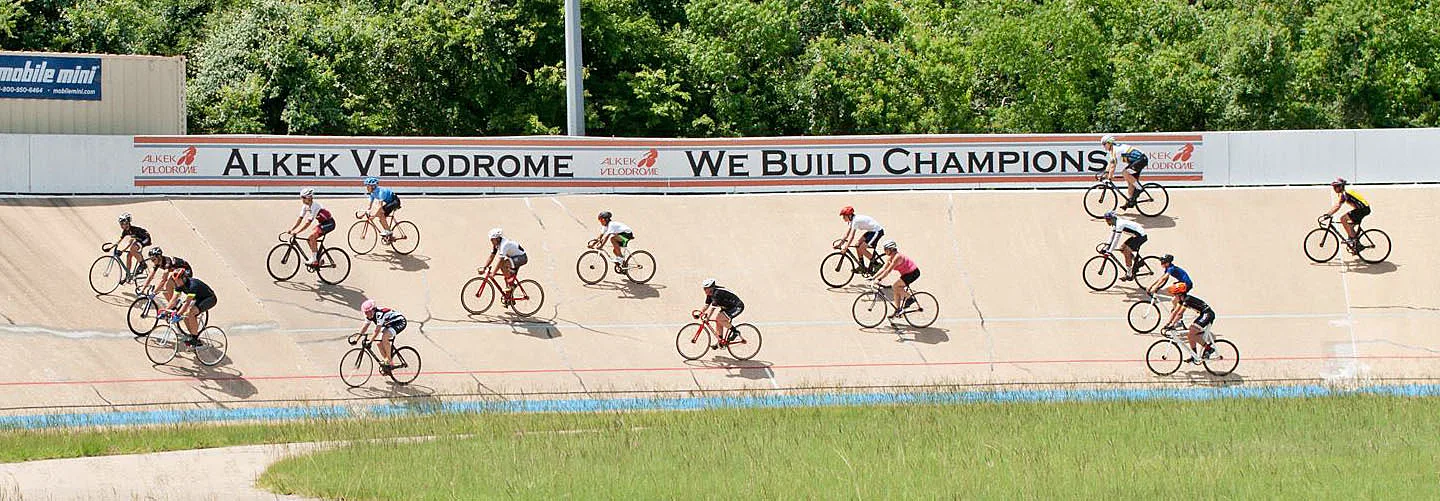 The Alkek Velodrome is a 333meter, concrete track. Its banking ranges from 33 degrees in the turns to 9 degrees in the straights.